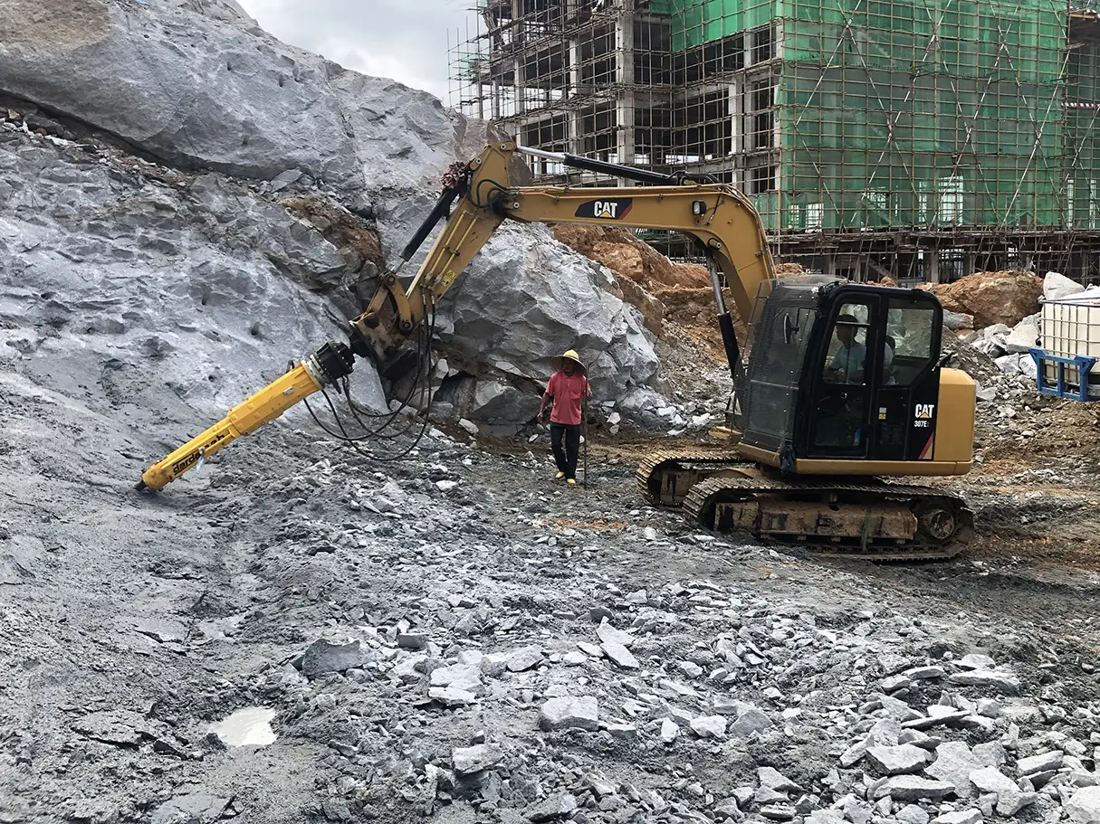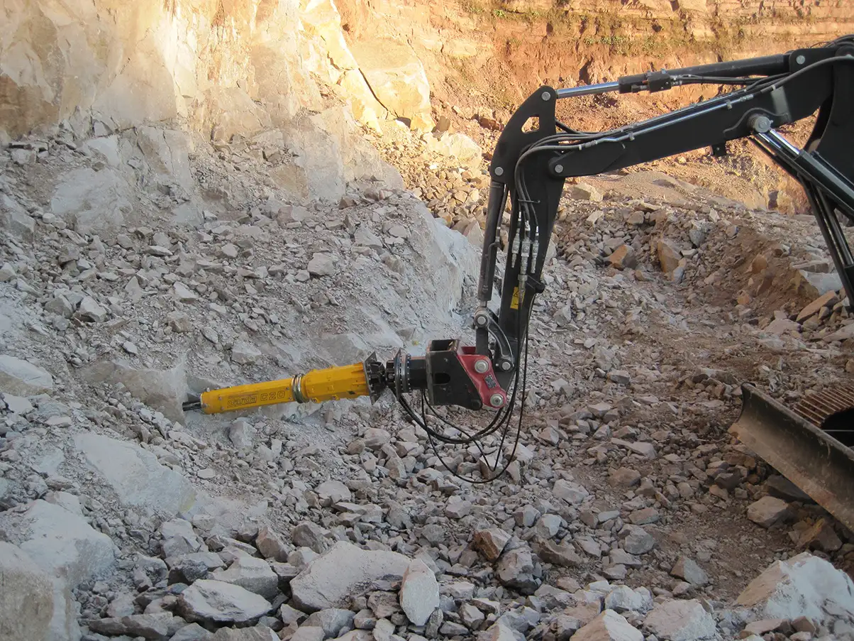 Darda C20 J vertikal och horisontal maskinburen hydraulisk bergspräckare används både vertikalt och horisontalt ihop med din maskin. Den är rekommenderad på grävare från 11 ton uppåt eller Brokk 300 uppåt. Denna hydraulkil har 360° roterande drivning så du kan rotera spräckaren och styra spräckriktningen. Den har en integrerad booster som boostar upp hydraultrycket till 500 bar och ett centralsystem för smörjfettet. Ingen omodern manuell smörjning av kilarna. Darda bergspräckarna går att använda under vatten.