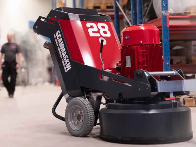 Scanmaskin 28 World Series RC är en fjärrstyrd betongslipmaskin. Vilket erbjuder en möjlighet för operatören att enkelt kunna styra hastigheten på slipskivorna, drivhjulen, samt erbjuder det ett ergonomiskt arbete för användaren. Flera olika operatörer får samma resultat. Det vill säga att det bidrar till en minimal belastning och inga vibrationer för operatören. Genom joysticken på radiokontrollen tillåts operatören att styra med en hög precision i den riktning och hastighet operatören önskar. Det finns även möjlighet att sätta maskinen i en vald hastighet framåt för att hålla en jämn fart under arbetets gång. Då är det lätt att gå runt och justera slang, kabel och dammsugare utan att stoppa slipningen.